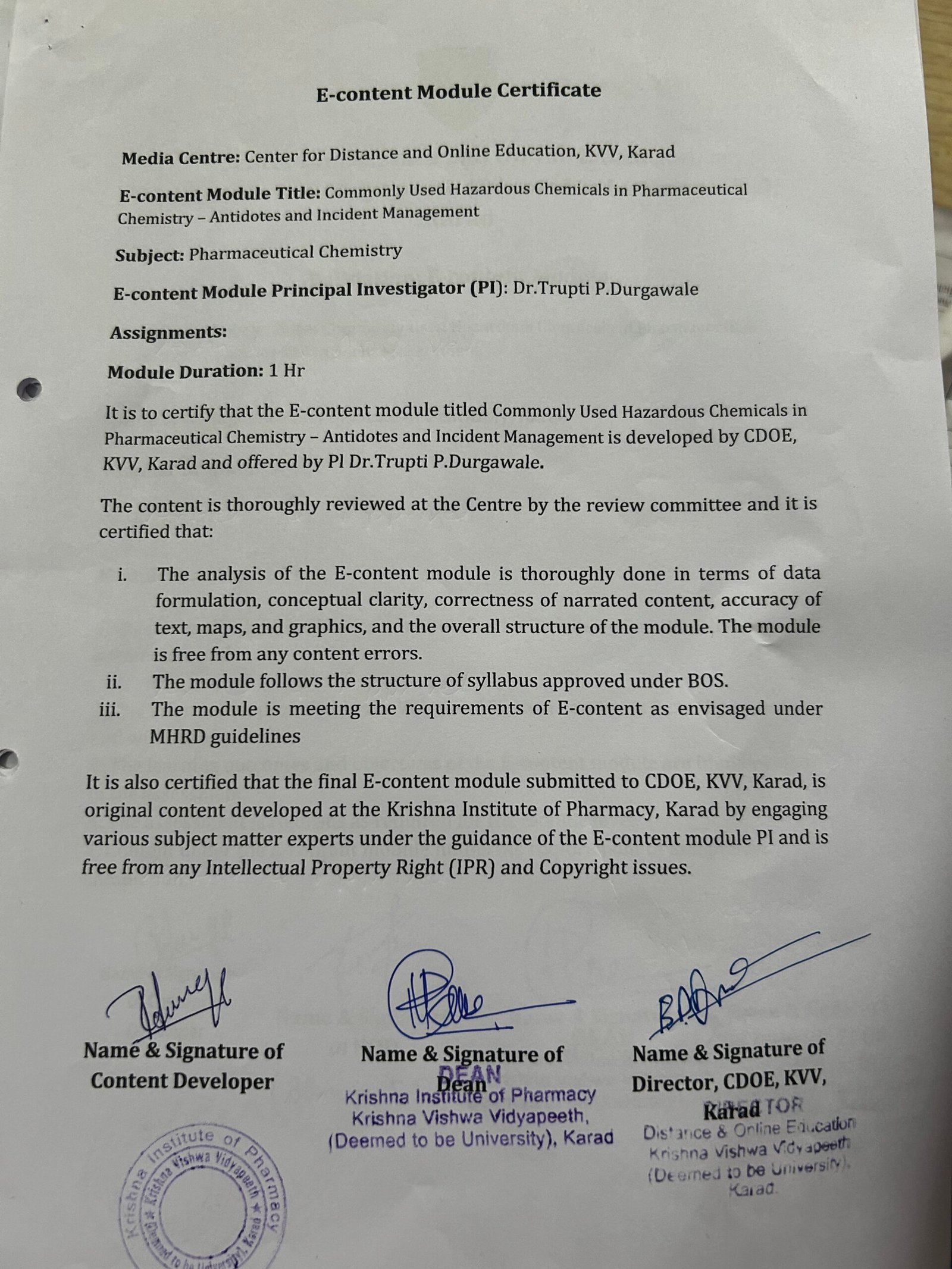 This report provides detailed verification of content review, quality checking, and validation status of the module as per institutional guidelines.