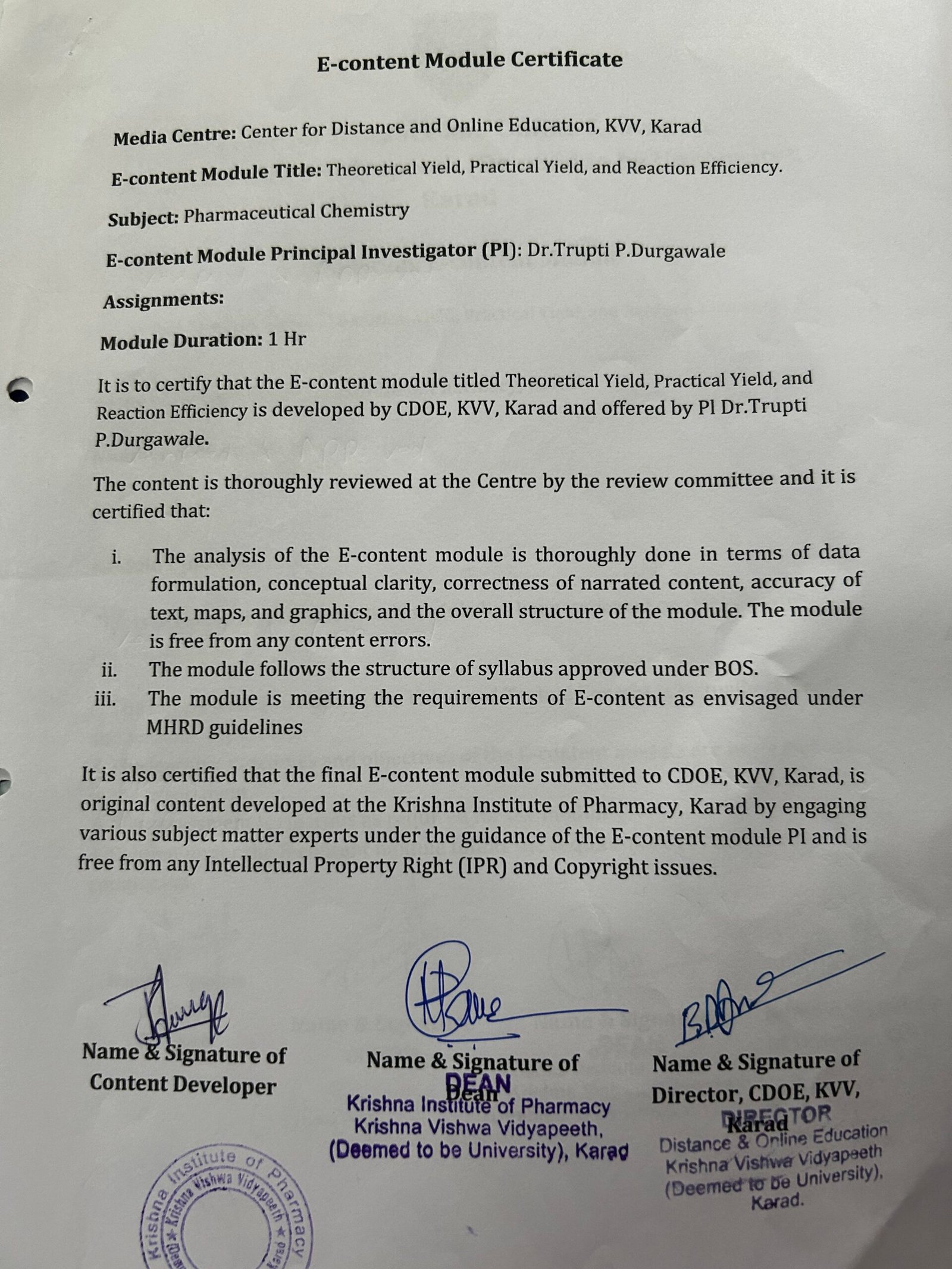 This certificate confirms successful completion and evaluation of the first part of the course module.